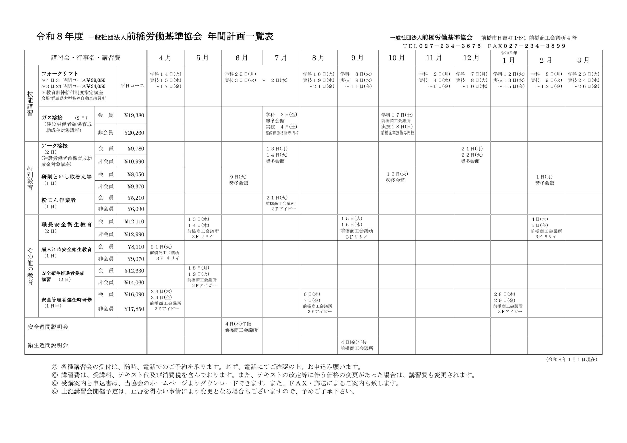• 職長等教育(安全衛生)講習(令和9年2月)